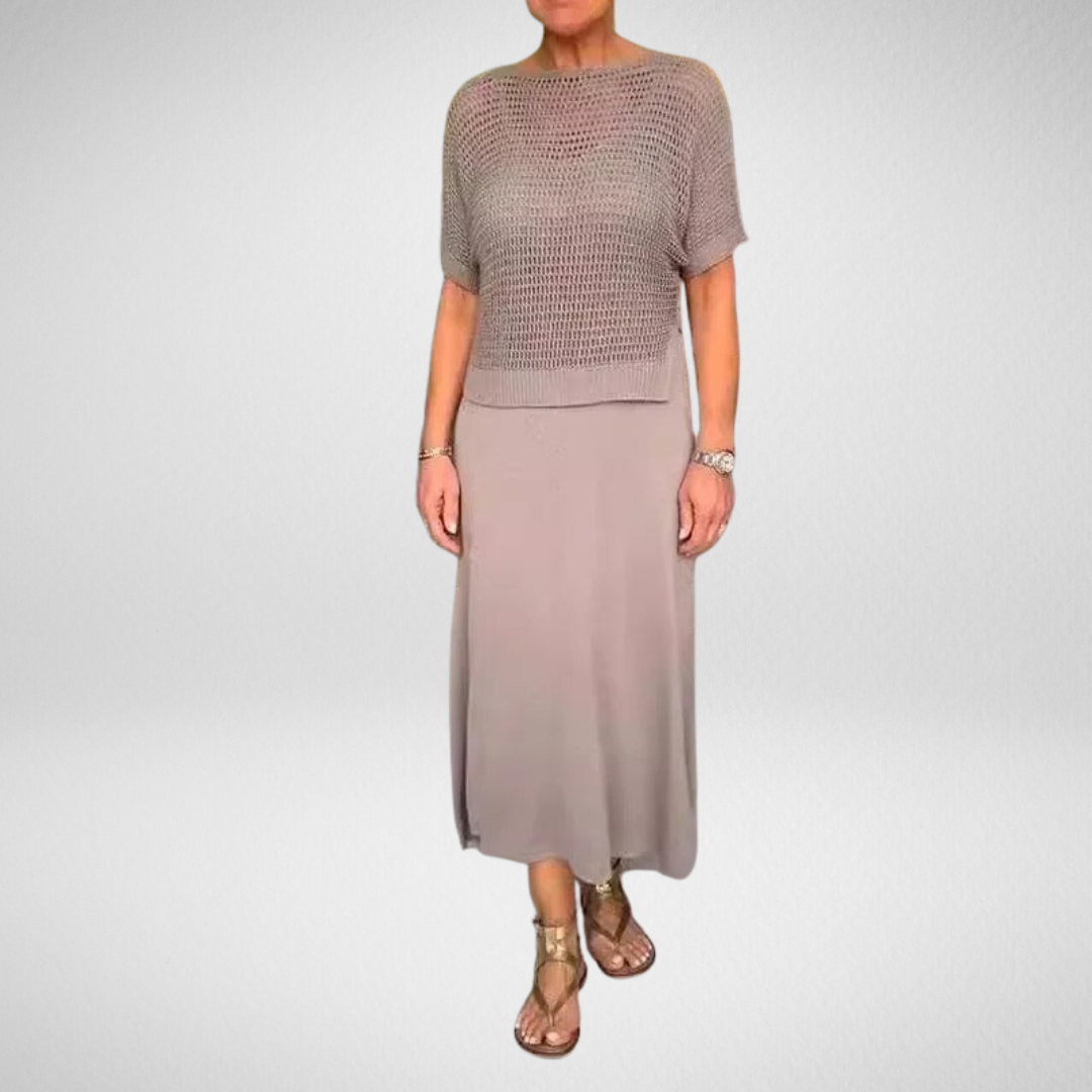 Un look frais, raffiné et intemporel, parfait pour les journées les plus chaudes. L'ensemble en teintes simples allie confort et style avec une touche minimal chic. Parfait pour les promenades en ville ou un apéritif en plein air. Disponible maintenant avec une remise spéciale pour les soldes d'été !